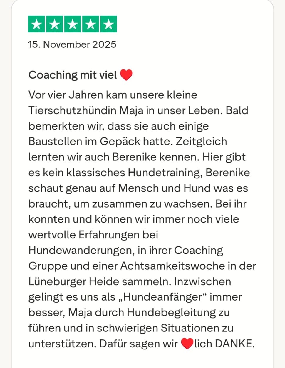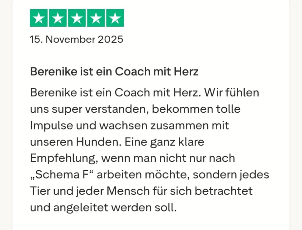 In einem geschützten Raum schauen wir uns gezielt deine aktuellen Herausforderungen an, gewinnen Klarheit und entwickeln Lösungen, die stimmig für dich und deinen Hund sind. In deinem Tempo und auf eurem ganz eigenen Weg.